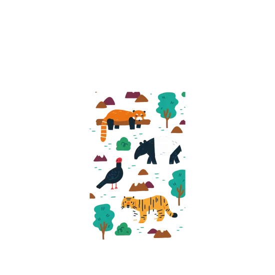 Fauna asiática - Stickers (panda rojo, faisán vietnamita, tigre malayo, tapir malayo)